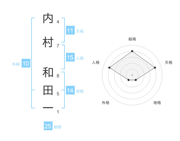 占い結果は姓名判断である以上、良い場合も悪い場合もありますが、決してお名前を誹謗中傷するものでなく、画数の自動計算によって得られたものです。また、本サイトの検索によって得られた鑑定結果で、第三者を誹謗中傷したり名誉を棄損するような行為を禁じます。