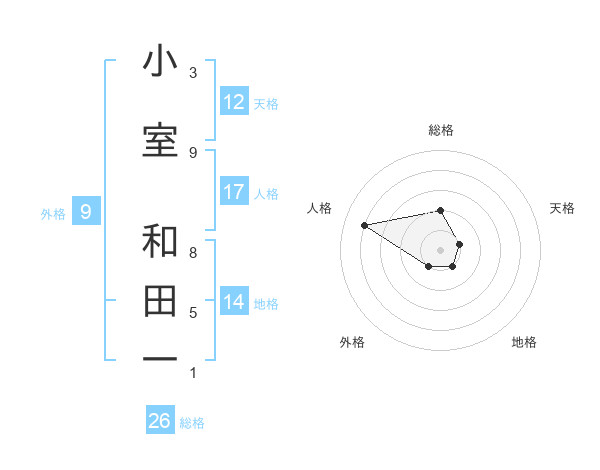 小室 和田一さんの地格は14画の1点!