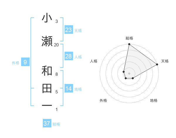 小瀬 和田一さんの総格は37画の5点