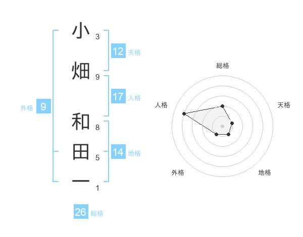 小畑 和田一さんを姓名の画数から五運を鑑定