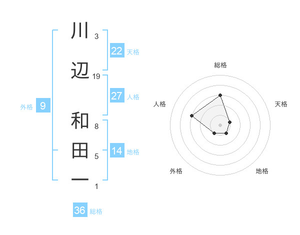 川辺 和田一さんを姓名の画数から五運を鑑定