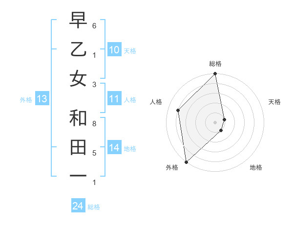 早乙女 和田一さんを姓名の画数から五運を鑑定