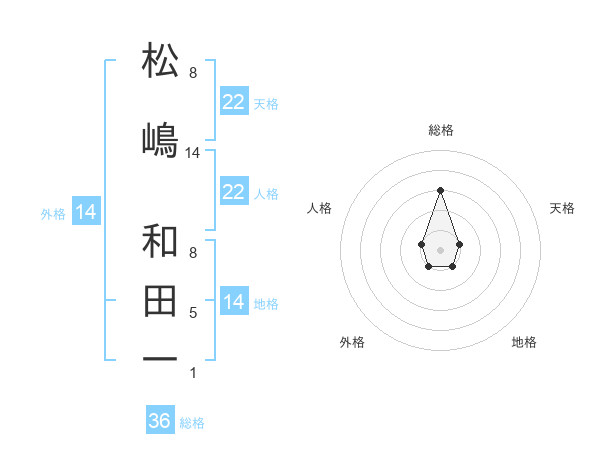 松嶋 和田一さんを姓名の画数から五運を鑑定