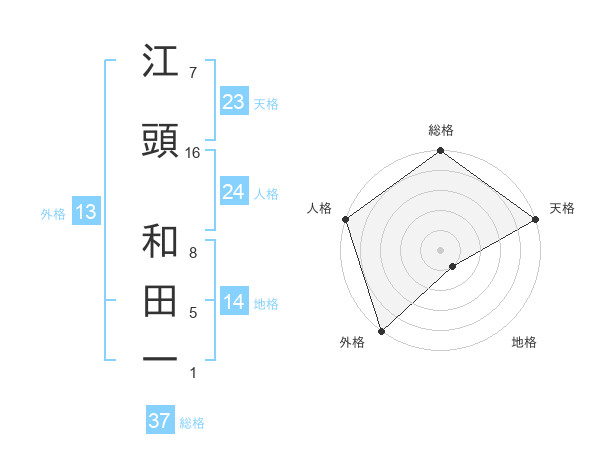 江頭 和田一さんを姓名の画数から五運を鑑定