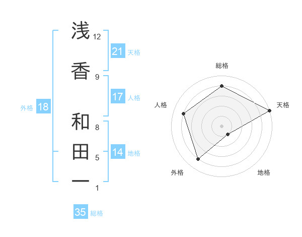 浅香 和田一さんの天格は21画の5点!