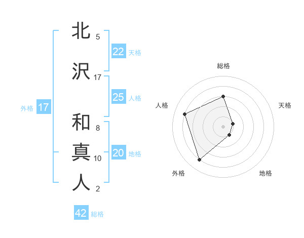 北沢 和真人さんを姓名の画数から五運を鑑定