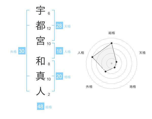 宇都宮 和真人さんを姓名の画数から五運を鑑定