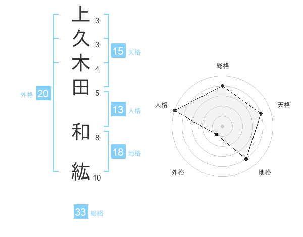 上久木田 和紘さんを姓名の画数から五運を鑑定