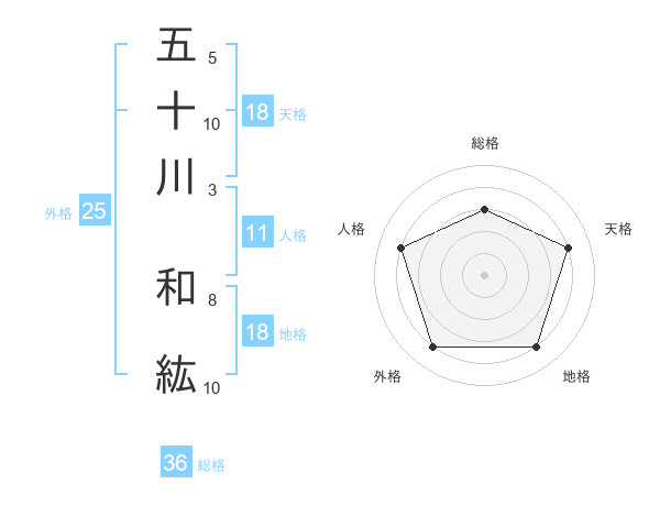 五十川 和紘さんを姓名の画数から五運を鑑定