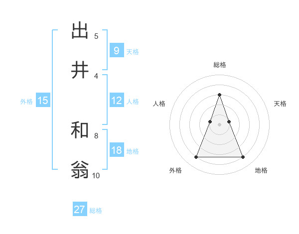 出井 和翁さんの総格は27画の3点!