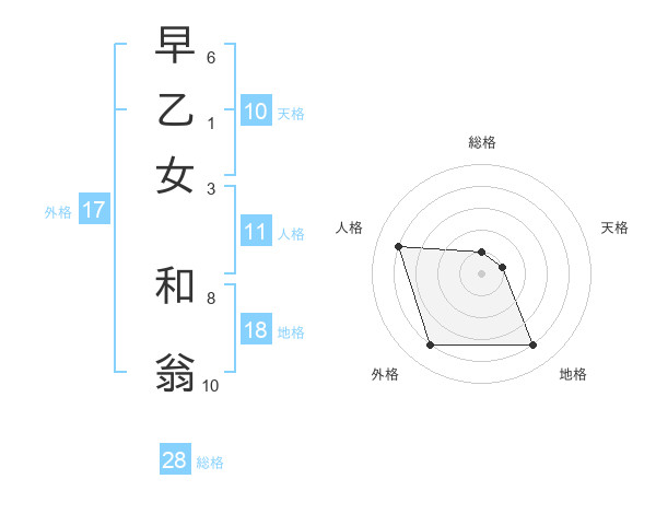 早乙女 和翁さんを姓名の画数から五運を鑑定