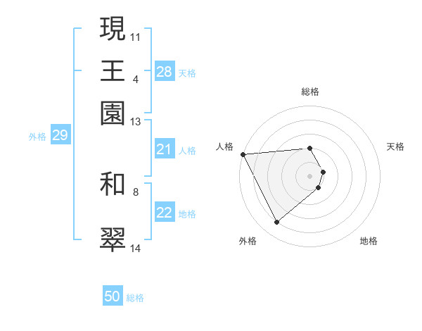 現王園 和翠さんを姓名の画数から五運を鑑定