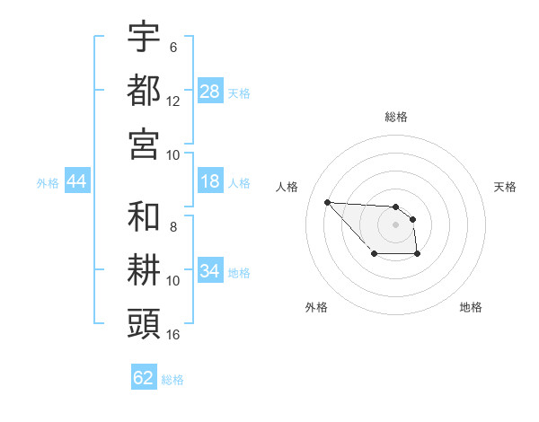 宇都宮 和耕頭さんの総格は62画の1点!
