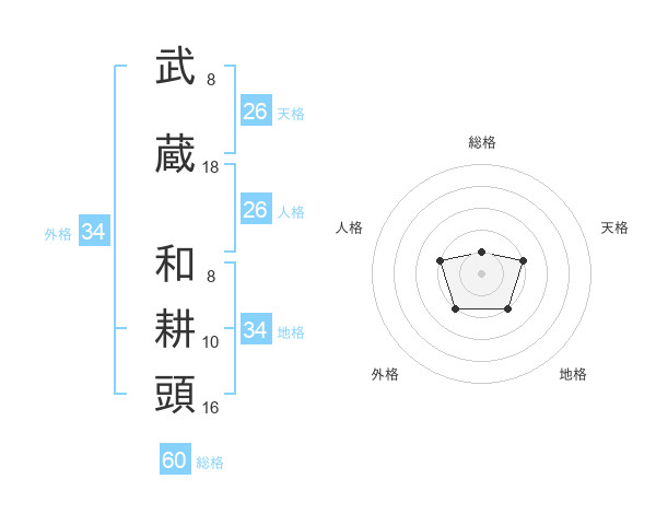 武蔵 和耕頭さんの総格は60画の1点!