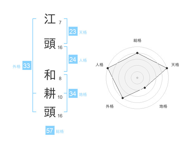 江頭 和耕頭さんを姓名の画数から五運を鑑定