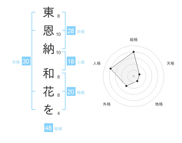 東恩納 和花をさんを姓名の画数から五運を鑑定