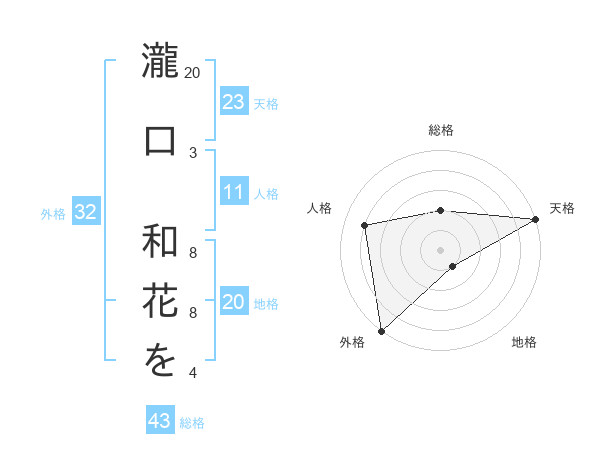 瀧口 和花をさんを姓名の画数から五運を鑑定