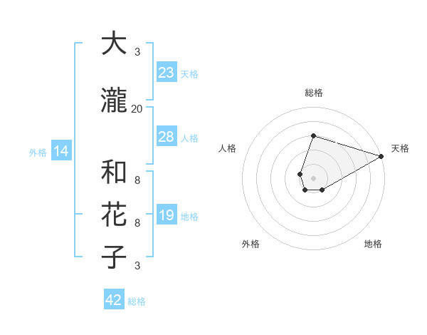 大瀧 和花子さんを姓名の画数から五運を鑑定