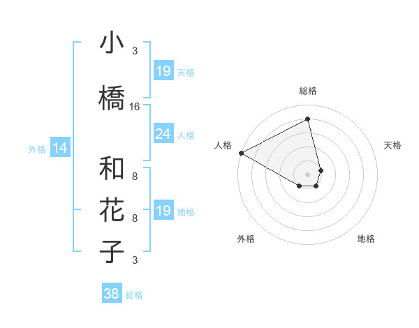 小橋 和花子さんの総格は38画の4点!