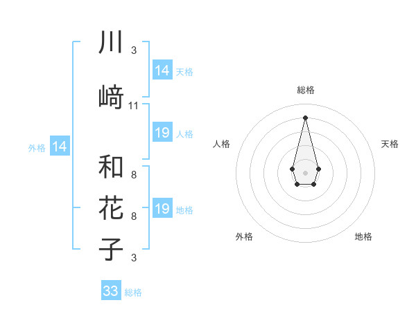 川﨑 和花子さんの総格は33画の4点!