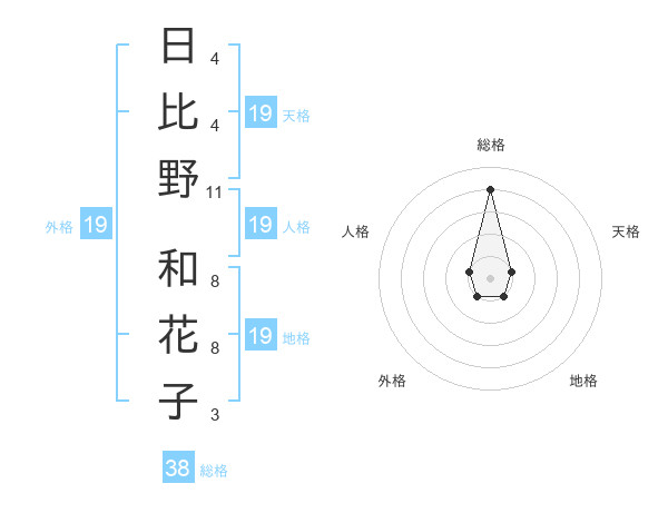 日比野 和花子さんの総格は38画の4点!