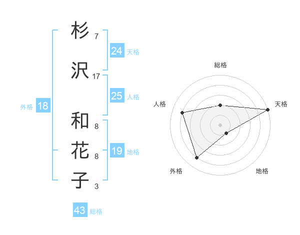 杉沢 和花子さんの天格は24画の5点!