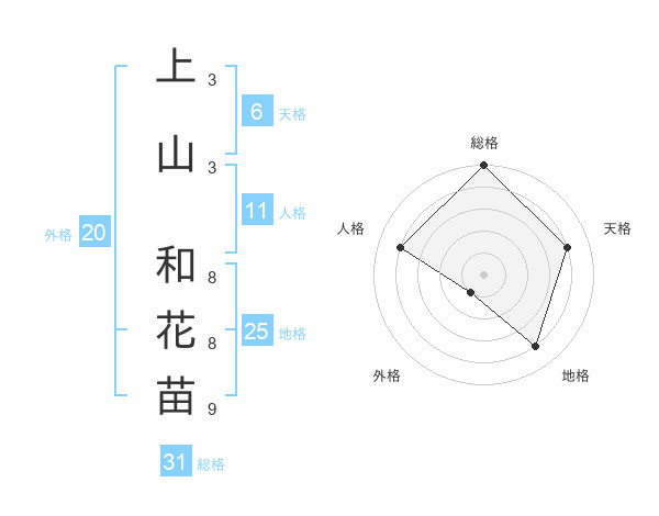 上山 和花苗さんの総格は31画の5点!