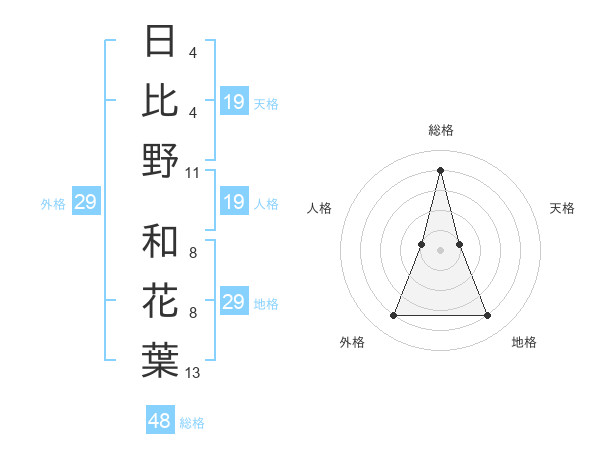 日比野 和花葉さんの地格は29画の4点