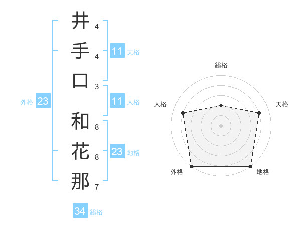 井手口 和花那さんの外格は23画の5点!