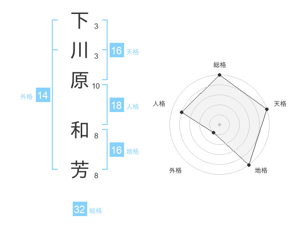 下川原 和芳さんの総格は32画の5点!