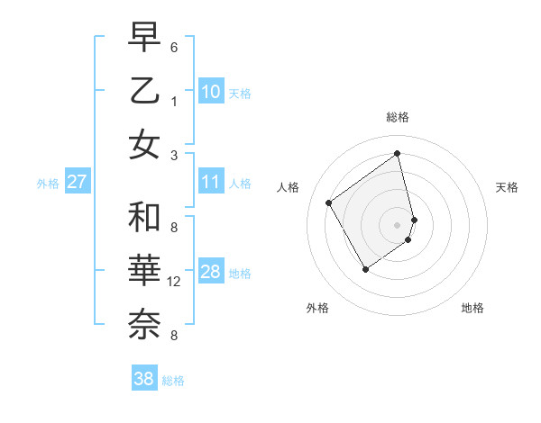 早乙女 和華奈さんの総格は38画の4点!