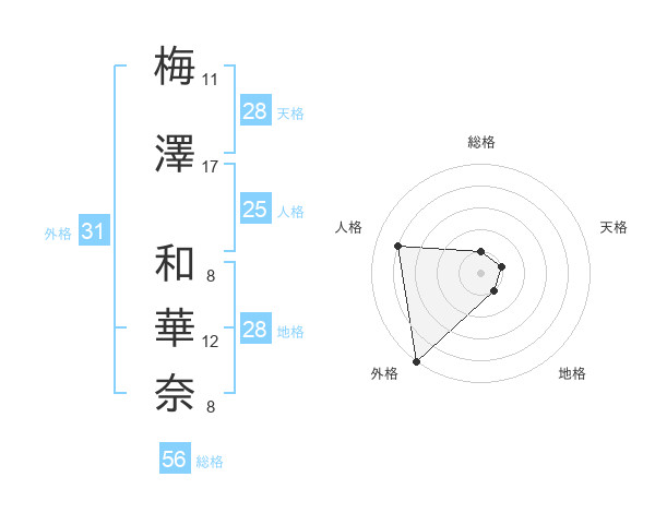 梅澤 和華奈さんの外格は31画の5点