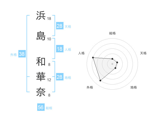 浜島 和華奈さんを姓名の画数から五運を鑑定
