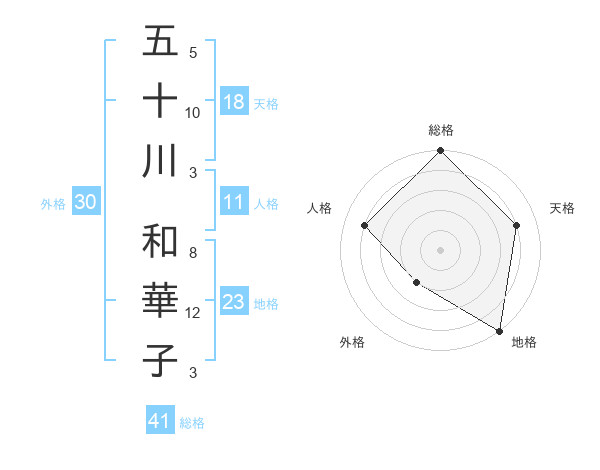 五十川 和華子さんの天格は18画の4点!