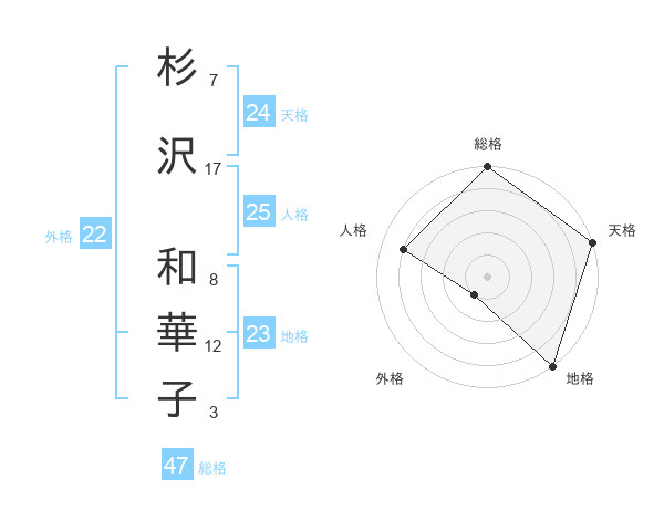杉沢 和華子さんを姓名の画数から五運を鑑定