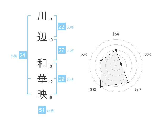 川辺 和華映さんを姓名の画数から五運を鑑定