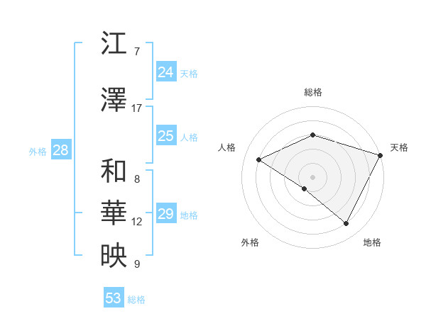 江澤 和華映さんを姓名の画数から五運を鑑定