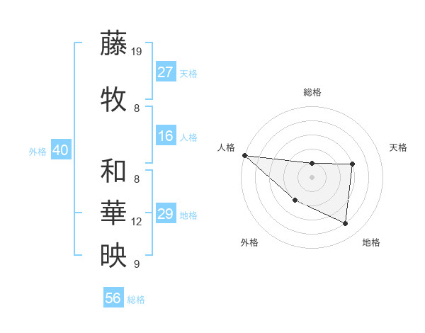 藤牧 和華映さんの人格は16画の5点!
