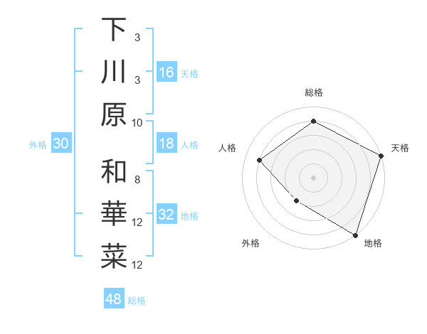 下川原 和華菜さんを姓名の画数から五運を鑑定