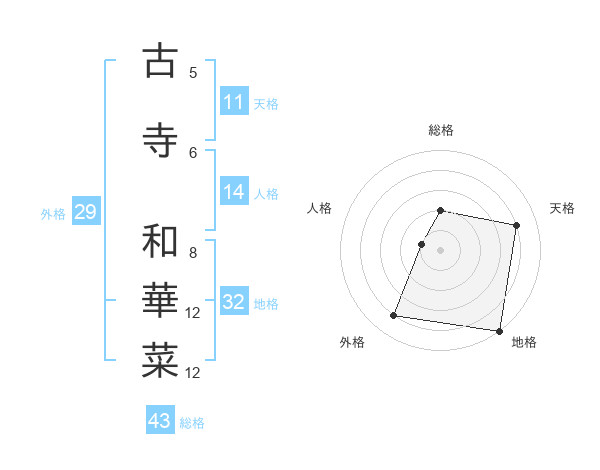 古寺 和華菜さんの総格は43画の2点!