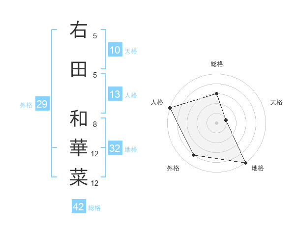 右田 和華菜さんを姓名の画数から五運を鑑定