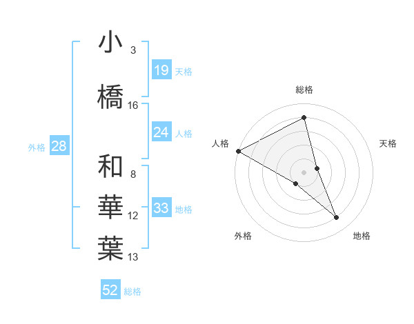 小橋 和華葉さんを姓名の画数から五運を鑑定