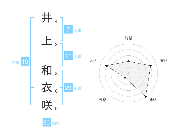 井上 和衣咲さんを姓名の画数から五運を鑑定