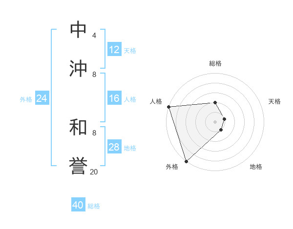 中沖 和誉さんを姓名の画数から五運を鑑定