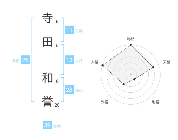 寺田 和誉さんを姓名の画数から五運を鑑定