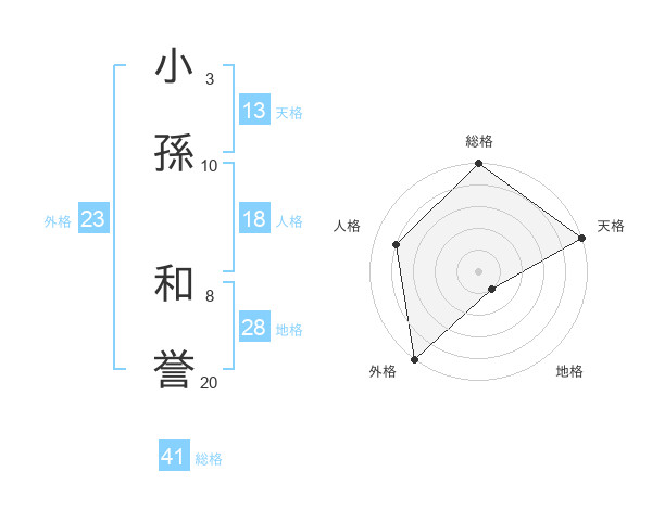 小孫 和誉さんを姓名の画数から五運を鑑定