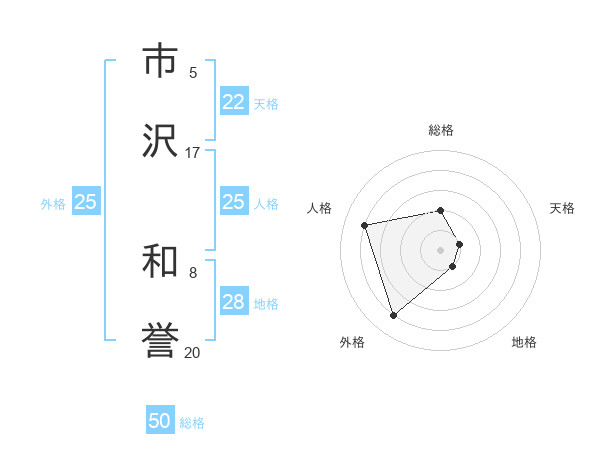 市沢 和誉さんの総格は50画の2点!