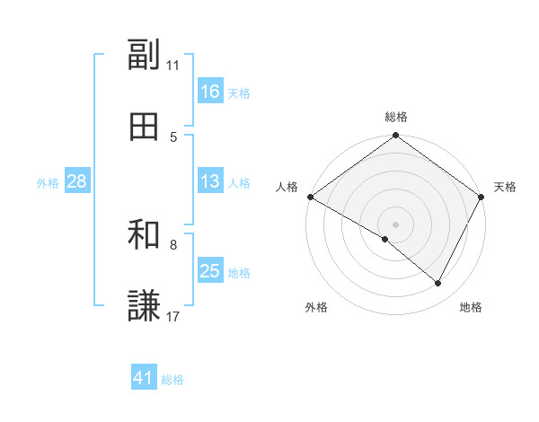 副田 和謙さんの総格は41画の5点!