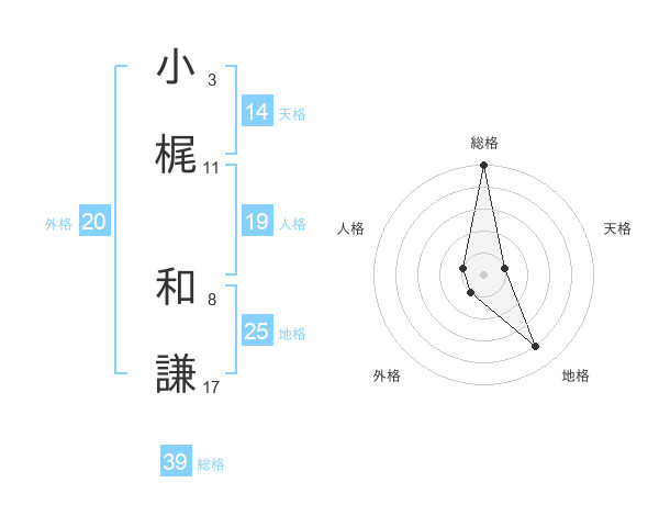 小梶 和謙さんの総格は39画の5点!