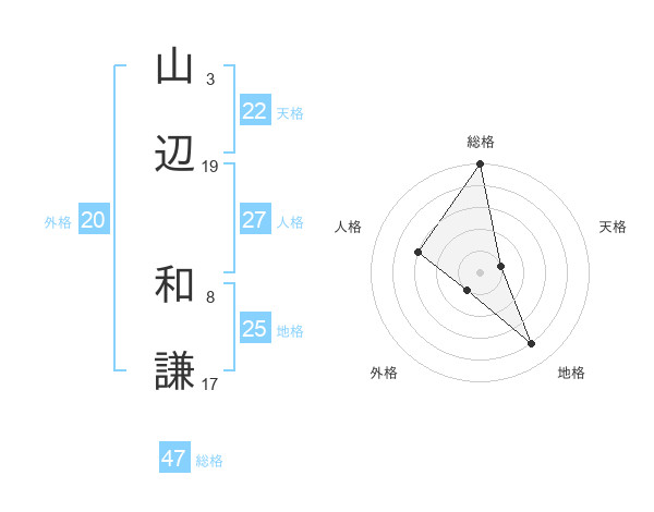 山辺 和謙さんの総格は47画の5点!